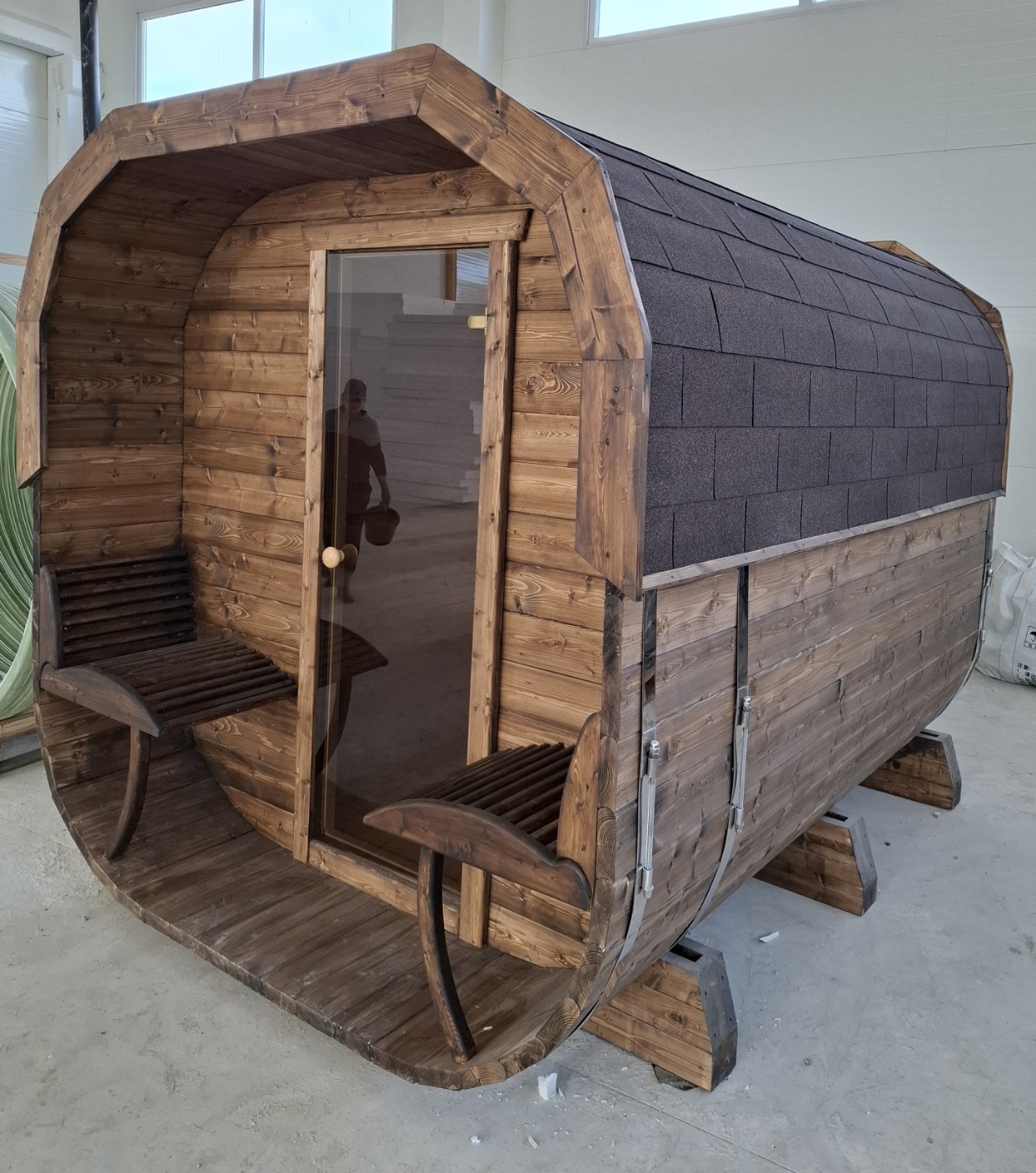 • Fasssauna vollständig montiert