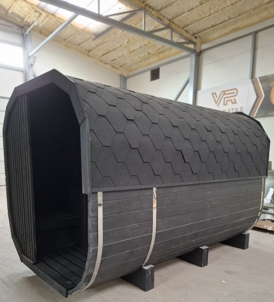 Halbrunde Fasssauna 3 Meter aus Fichte – Outdoor Gartensauna mit Holzofen