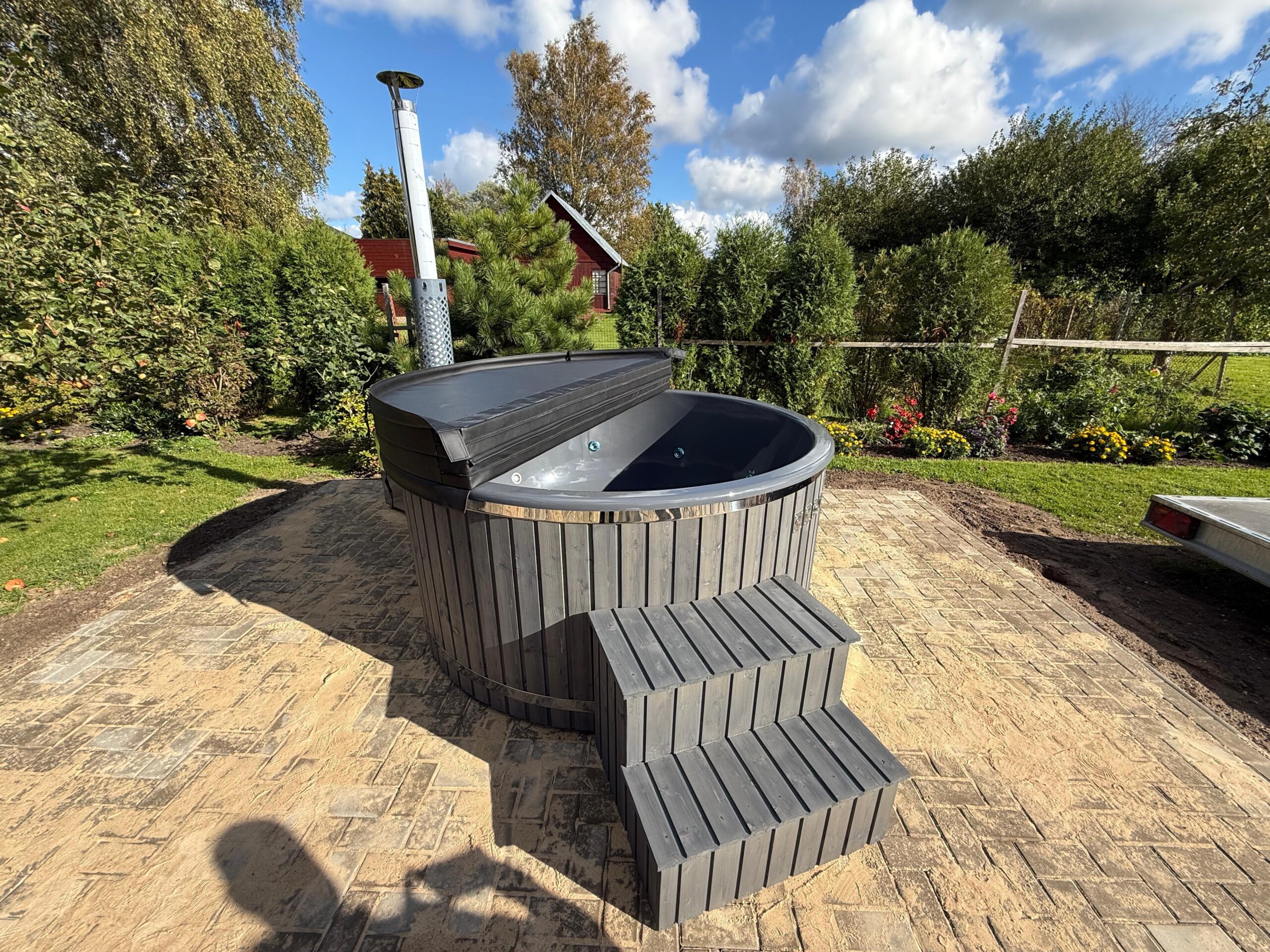 Hot Tub mit Thermoholzverkleidung und externen Holzofen aus Edelstahl – Dein privates Spa für zuhause