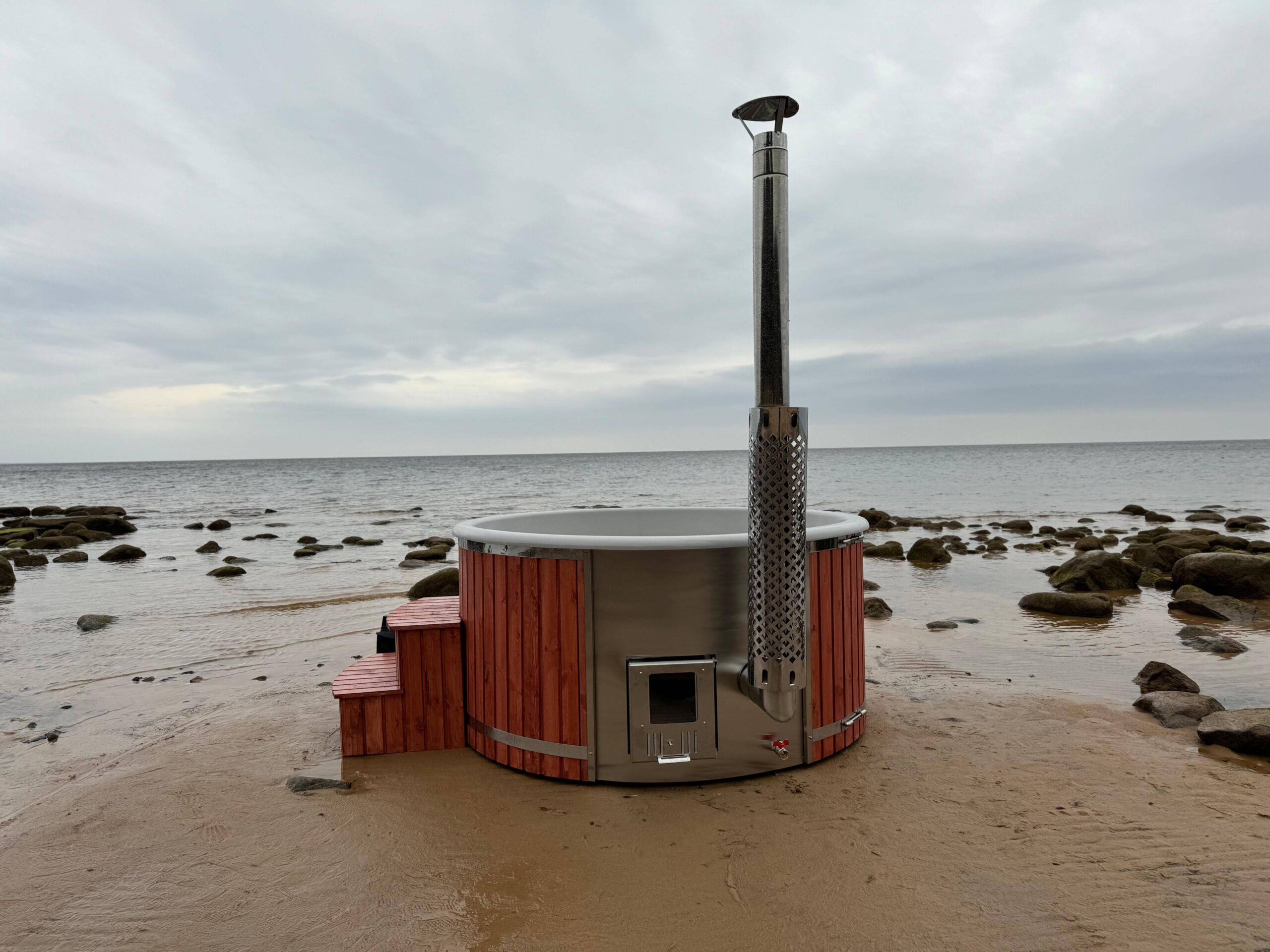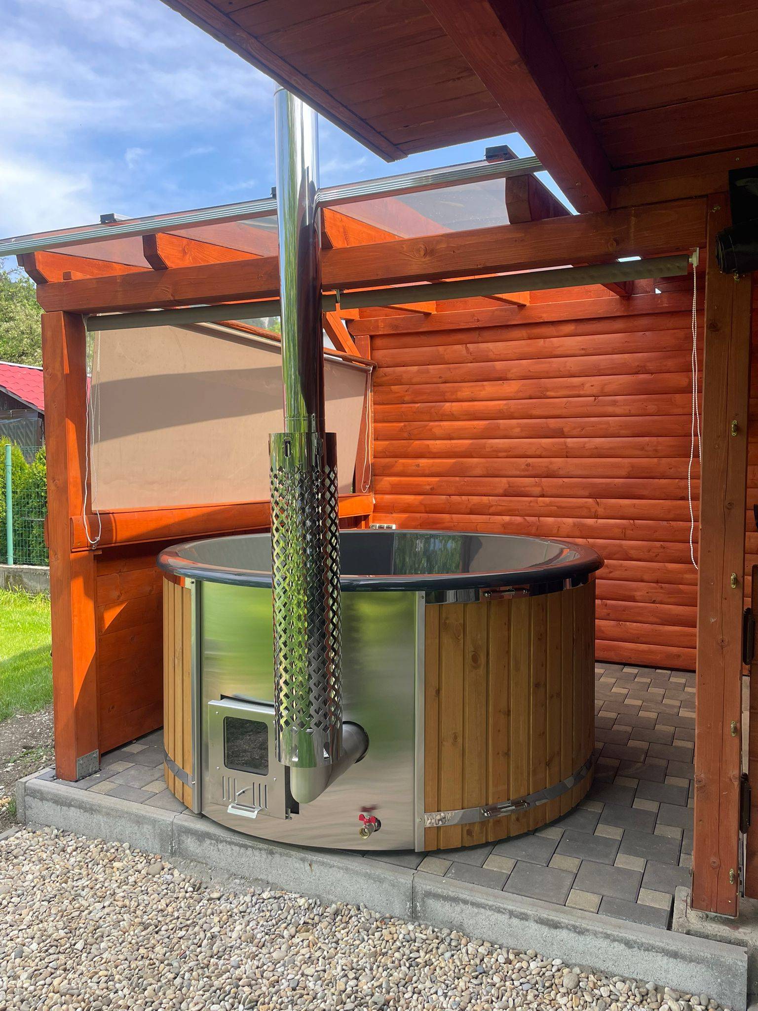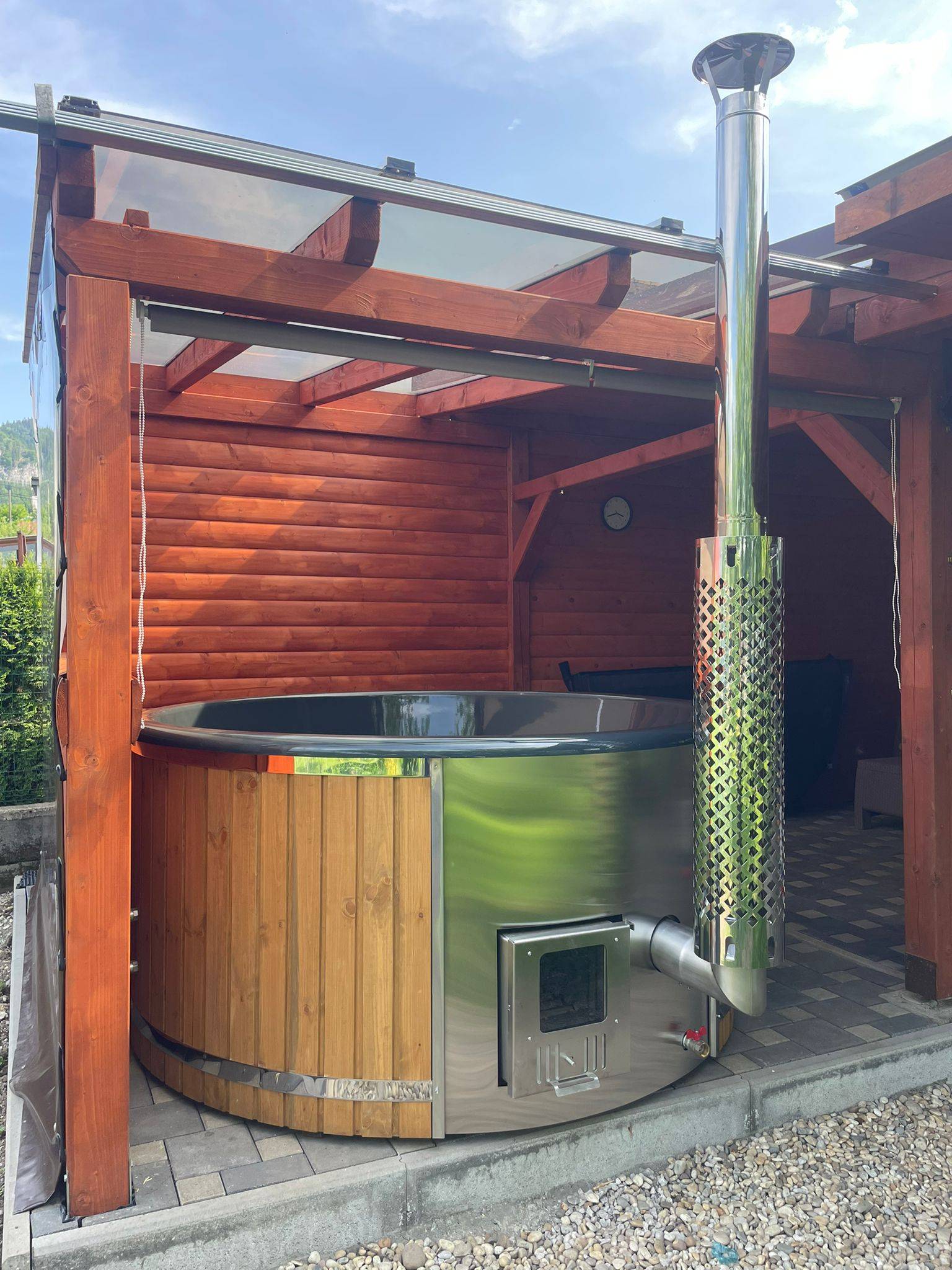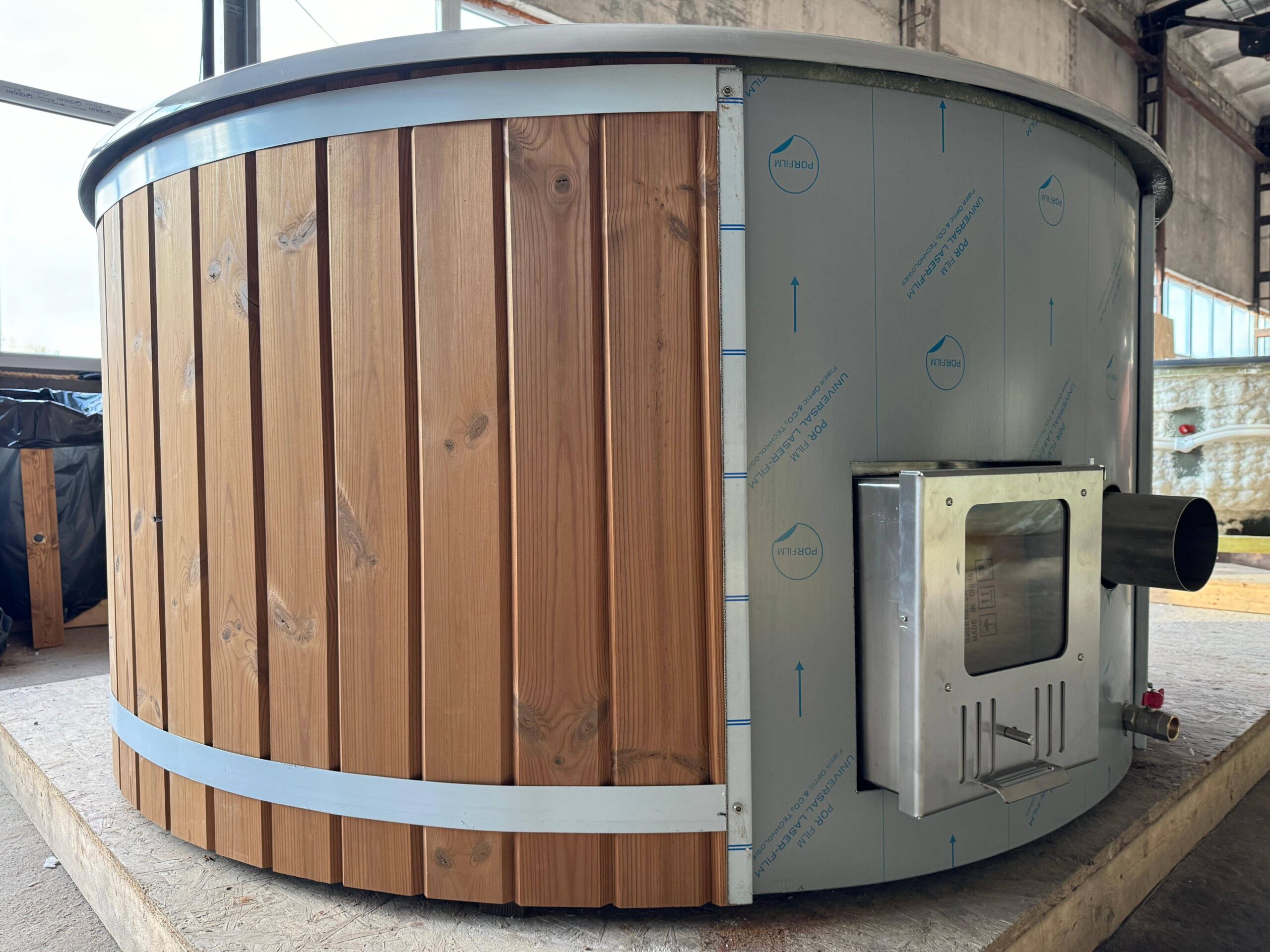 Hot Tub XL mit Fichtenholzverkleidung und integriertem Holzofen aus Edelstahl – Dein privates Spa für zuhause