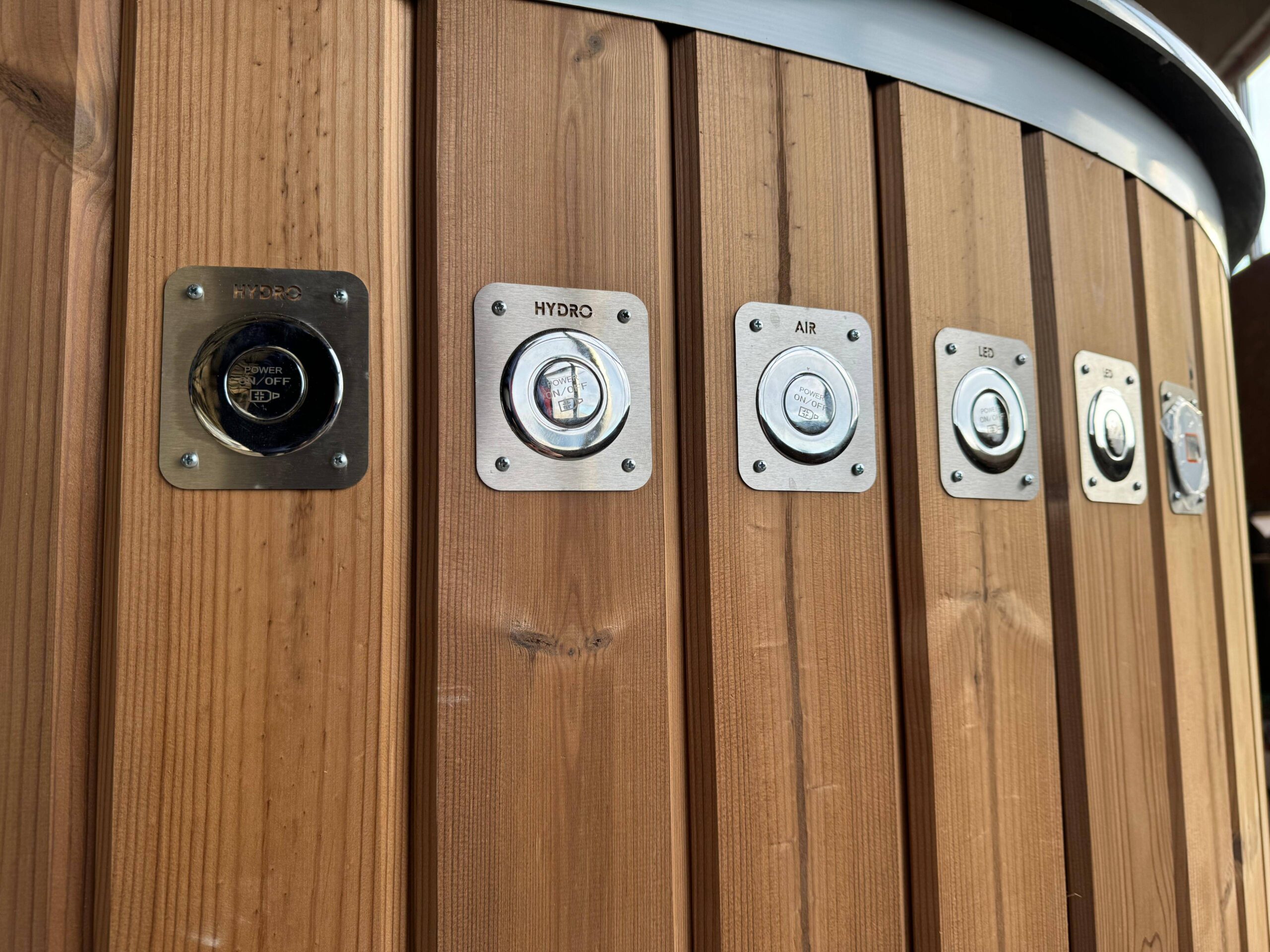 Der Ofen ist harmonisch in das Design des Hot Tubs eingebunden und ermöglicht ein authentisches Badeerlebnis – ganz ohne Stromabhängigkeit.