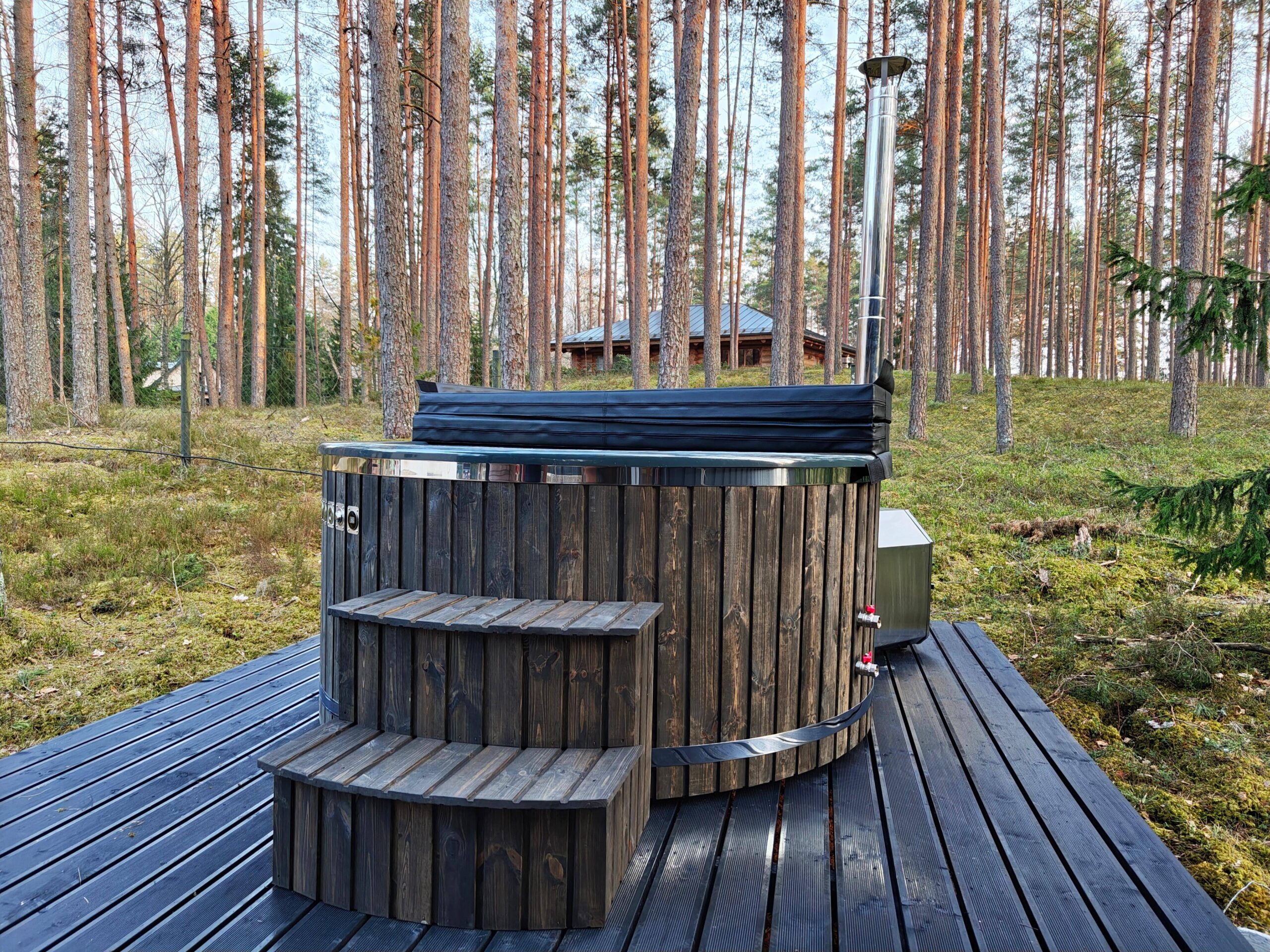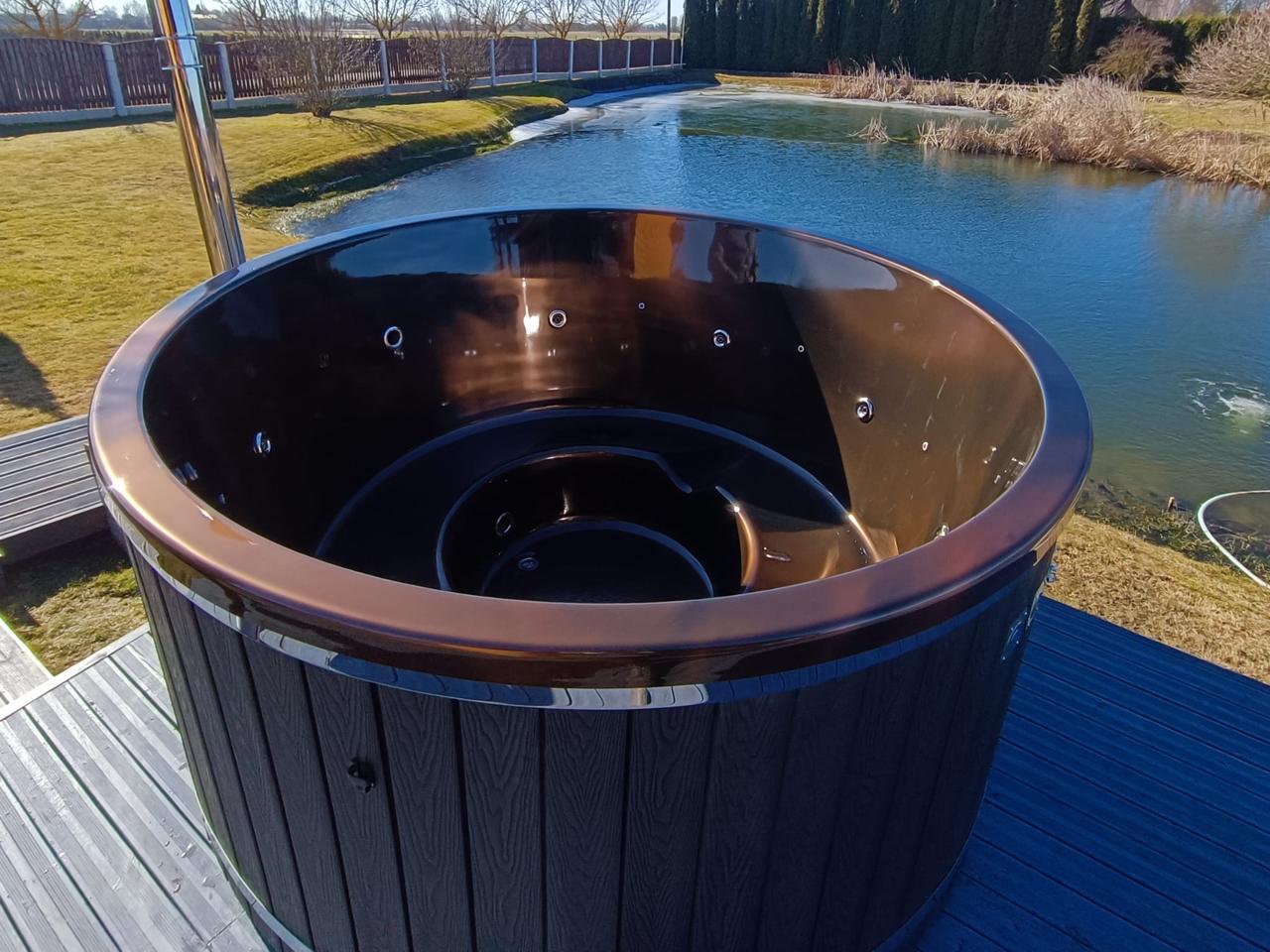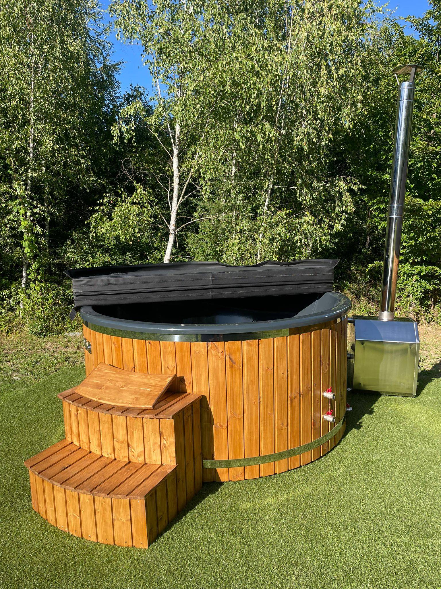 Hot Tub XL mit Thermoholzverkleidung und externen Holzofen aus Edelstahl – Dein privates Spa für zuhause