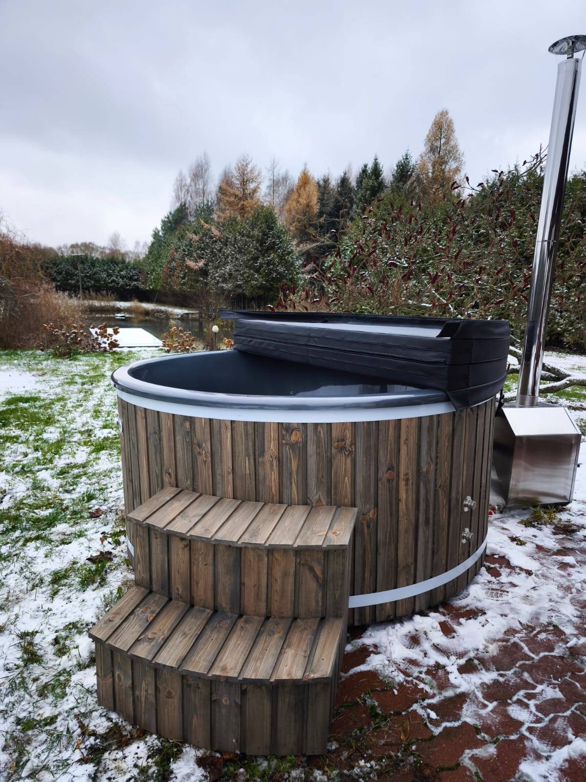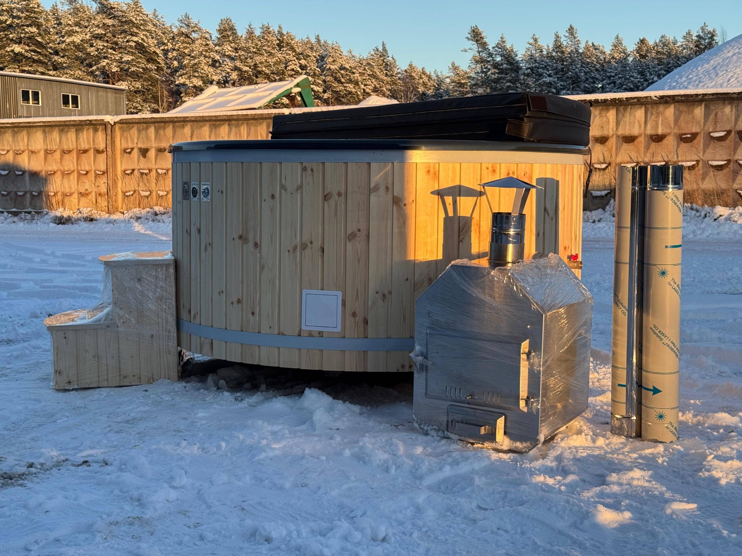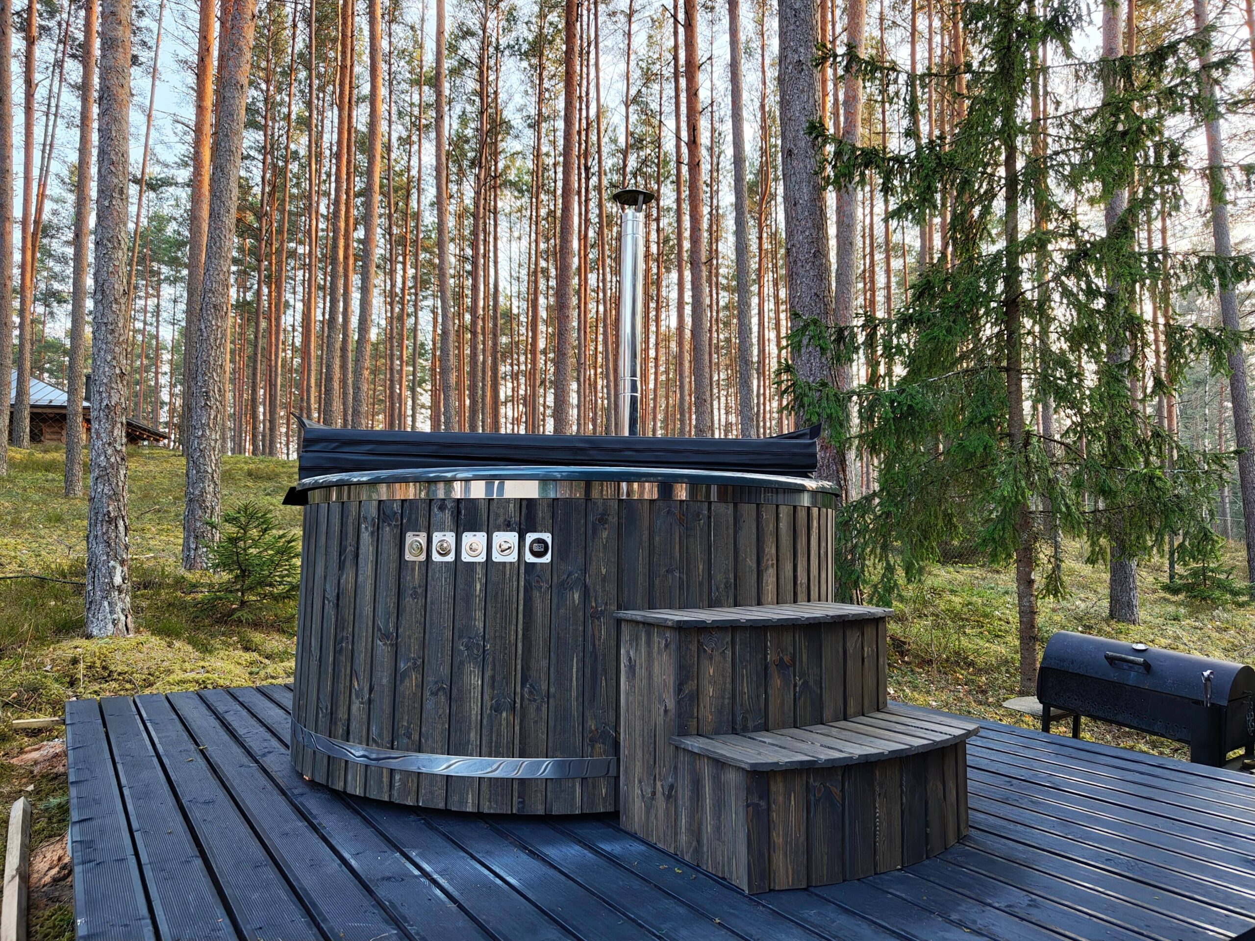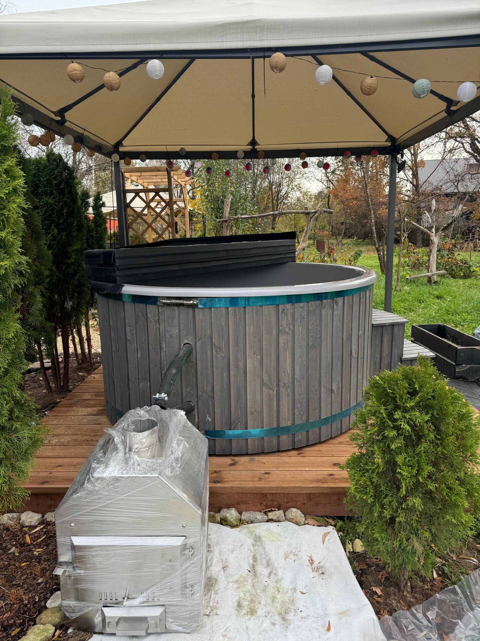 Hot Tub XL mit Thermoholzverkleidung und externen Holzofen aus Edelstahl – Dein privates Spa für zuhause