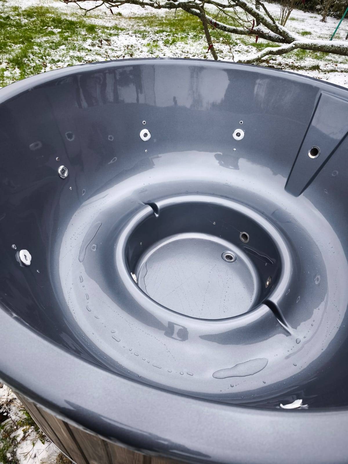 Der leistungsstarke Außenofen aus Edelstahl sorgt für eine schnelle und effiziente Erwärmung des Wassers, während die integrierten Hydromassagedüsen für eine intensive Entspannung von Körper und Geist sorgen.