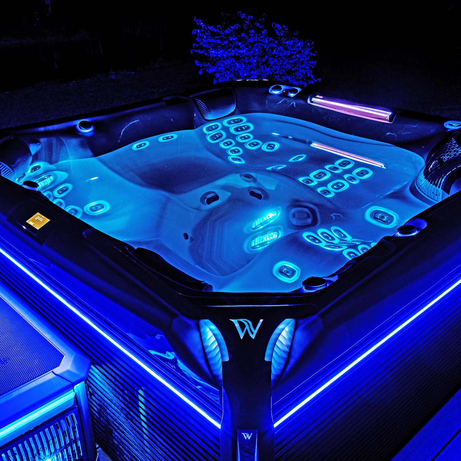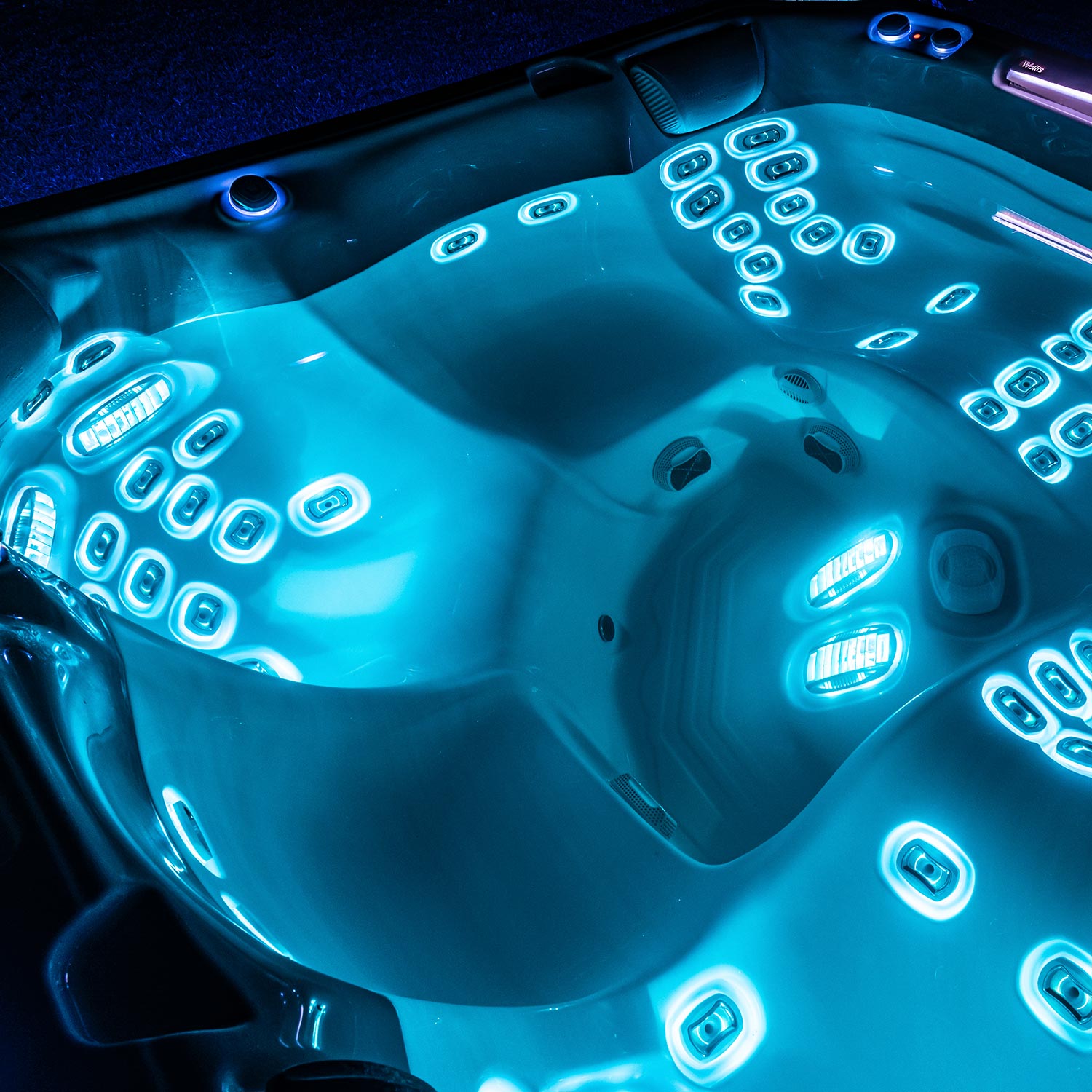Die integrierte LED-Farbtherapie sorgt für eine angenehme Atmosphäre im Whirlpool.