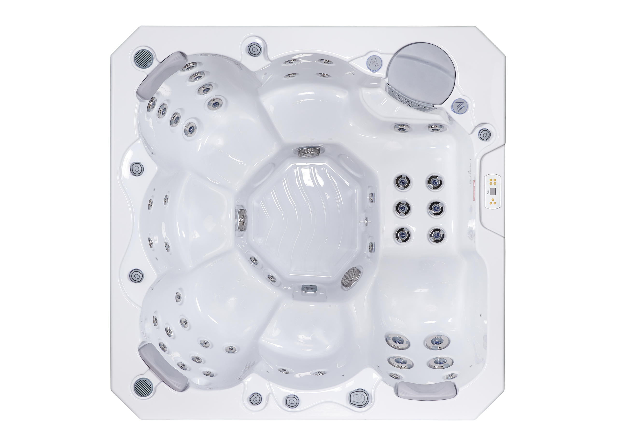 Dank seiner ergonomischen Sitzanordnung bietet der Whirlpool Platz für bis zu 6 Personen und sorgt mit seinen leistungsstarken Massagedüsen für eine intensive Hydrotherapie.
