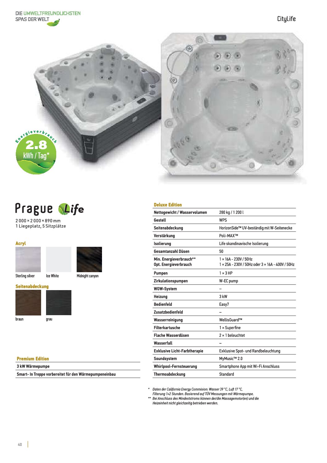 Bei der Premium Edition ist zusätzlich zur Ausstattung der Deluxe Edition die Smart-In Treppe und eine 3 kW Wärmepumpe mit enthalten. Die Wärmepumpe kann unter der größeren Stufe, der Smart-In Treppe verstaut werden. Die Erwärmung des Wassers kann kostengünstiger aufrechterhalten werden, ohne die Ästhetik des Produkts zu beeinträchtigen. Smart-In-Treppe mit eingebauter Wärmepumpe kann Temperaturen von -5°C bis zu +40°C heizen oder kühlen, wodurch 70-75% der Heizenergie eingespart werden kann. Im Inneren der Treppe haben wir Ablagefächer vorgesehen, in denen Handtücher oder Chemikalien aufbewahrt werden können.